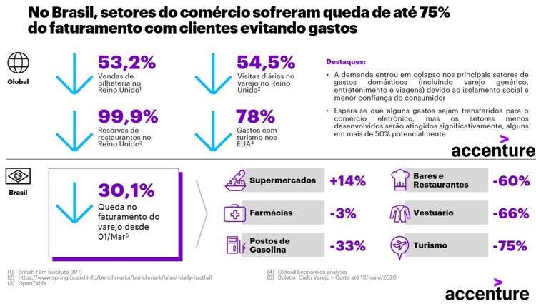 Comércio brasileiro tem queda de 75% nos primeiros meses de isolamento social,aponta estudo da Accenture