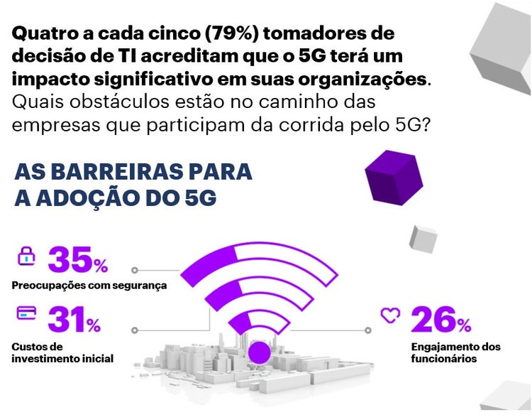 O custo de acomodar as mudanças que o 5G trará também é uma preocupação para os gestores de empresas. Em particular, o custo da operacionalização do 5G é um tópico importante, e quatro em cada cinco entrevistados (80%) acreditam que o custo do gerenciamento de sua infraestrutura e aplicativos de TI aumentará. Enquanto isso, quase um terço (31%) ainda acha que o custo inicial da implementação do 5G será muito alto.