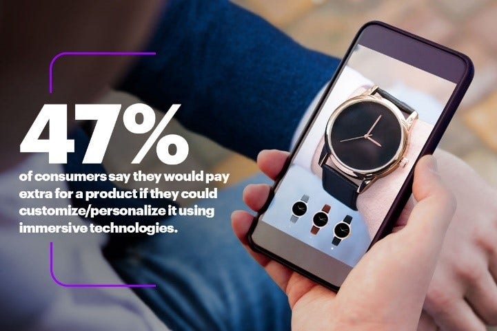 - 47% dos consumidores engajariam com produtos usando tecnologias imersivas, principalmente se tivessem acesso a recomendações personalizadas.
