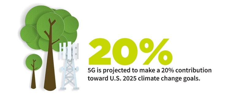 O estudo 5G Connectivity: A Key Enabling Technology to Meet America’s Climate Change Goals mostra que o uso das redes 5G possibilitará a redução adicional de 330,8 milhões de toneladas métricas de dióxido de carbono equivalente (MMtCO2e) até 2025. Resultado semelhante seria obtido se fossem retirados 26% dos veículos de passageiros em circulação nos EUA por um ano - algo em torno de 72 milhões de veículos.
